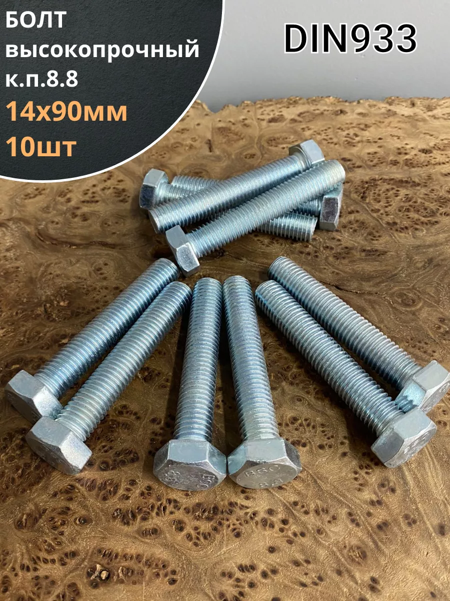 Болт высокопрочный М14х90 ОЦ к.п.8.8 DIN933 (10 шт.)