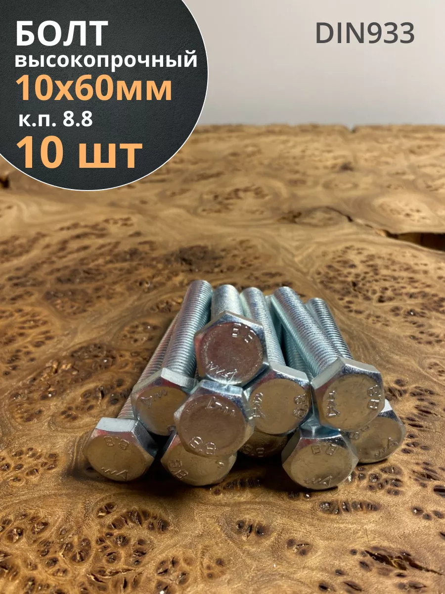 Болт высокопрочный оцинкованный М10х60 к.п.8.8 DIN933(10 шт)