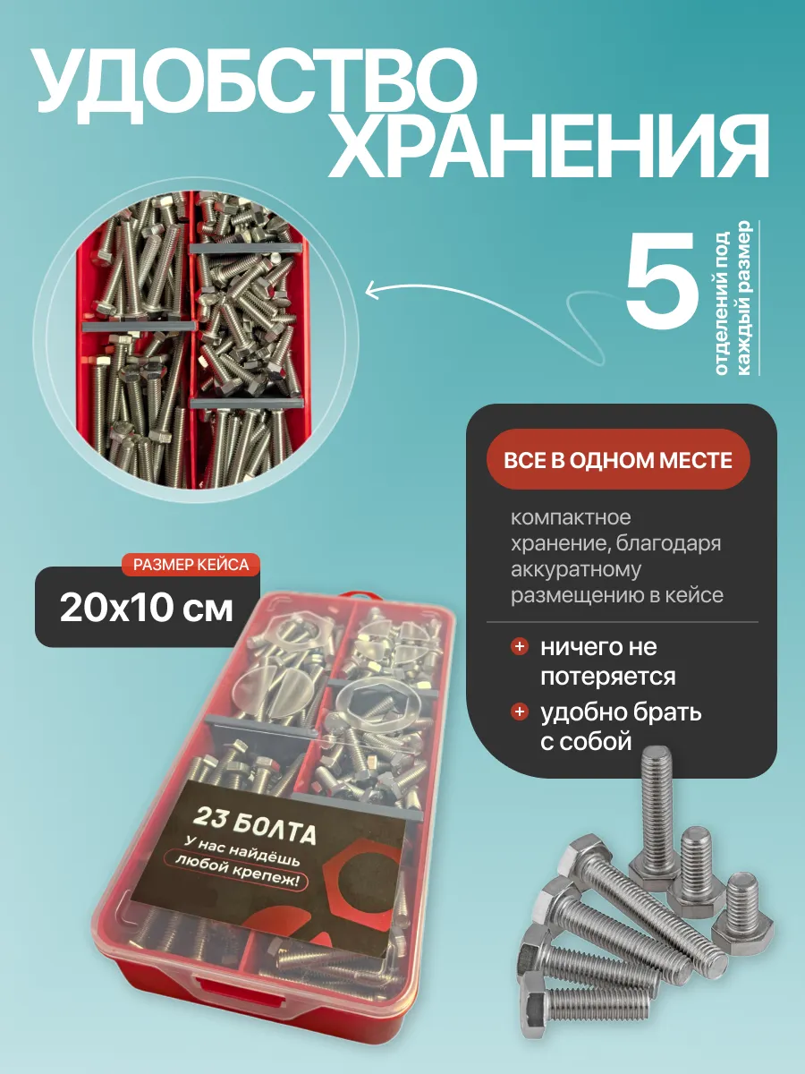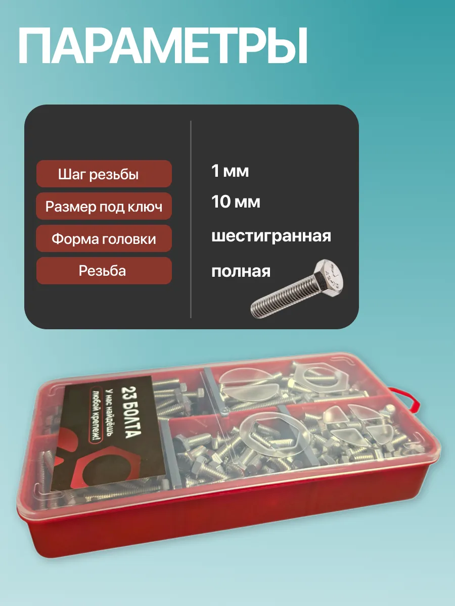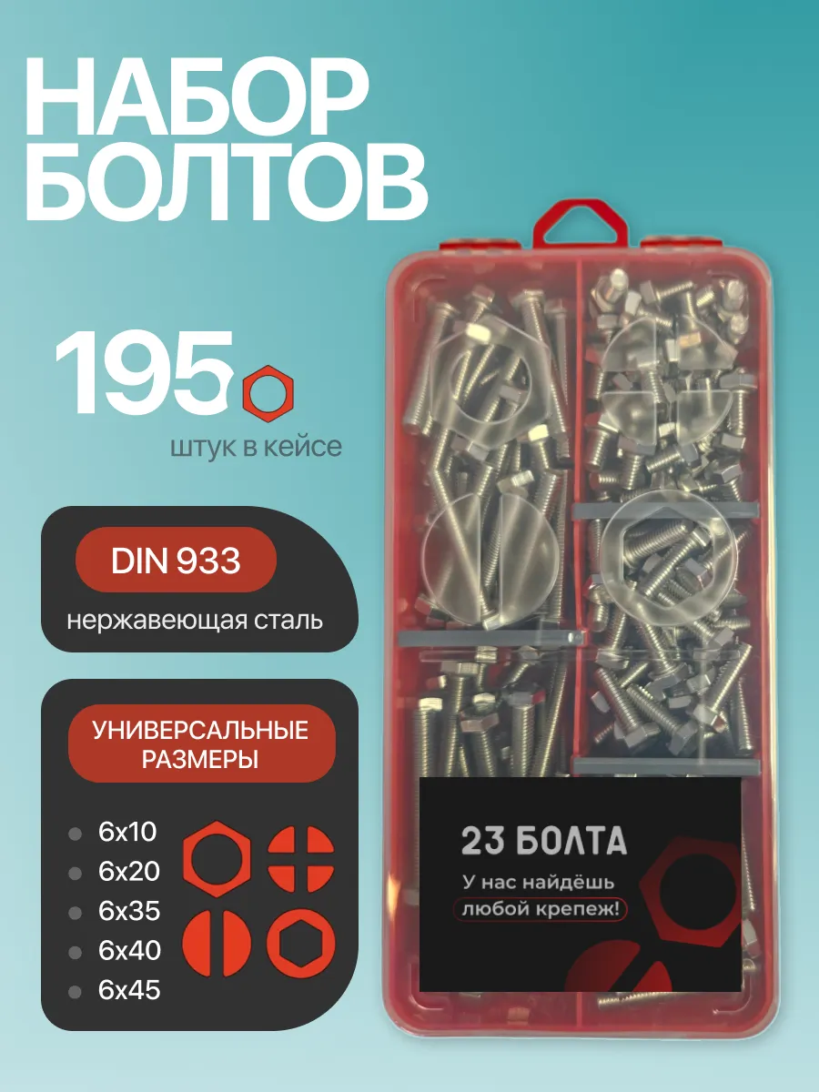 Болты нержавеющие М6 DIN933 в органайзере НАБОР 2