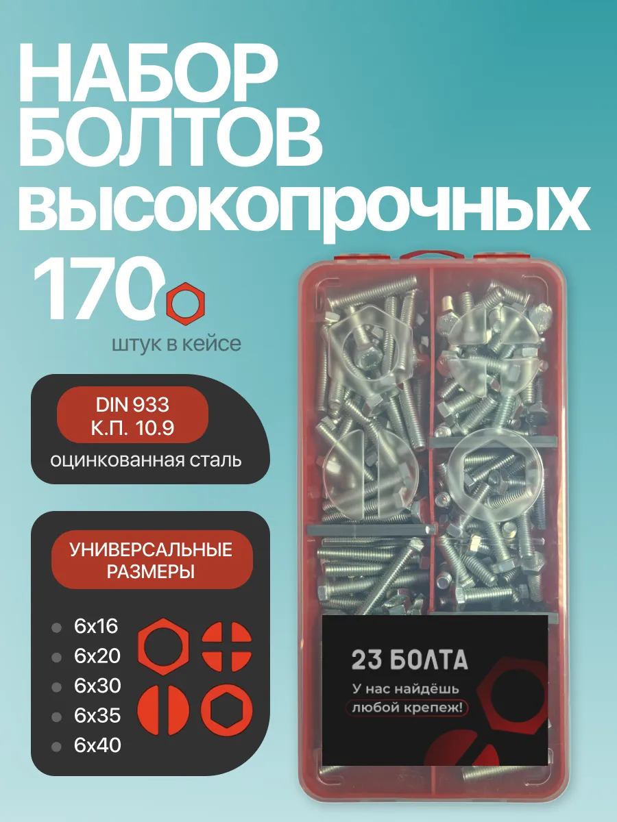 Болты высокопрочные М6 ОЦ к.п.10.9 DIN933 органайзер НАБОР 1