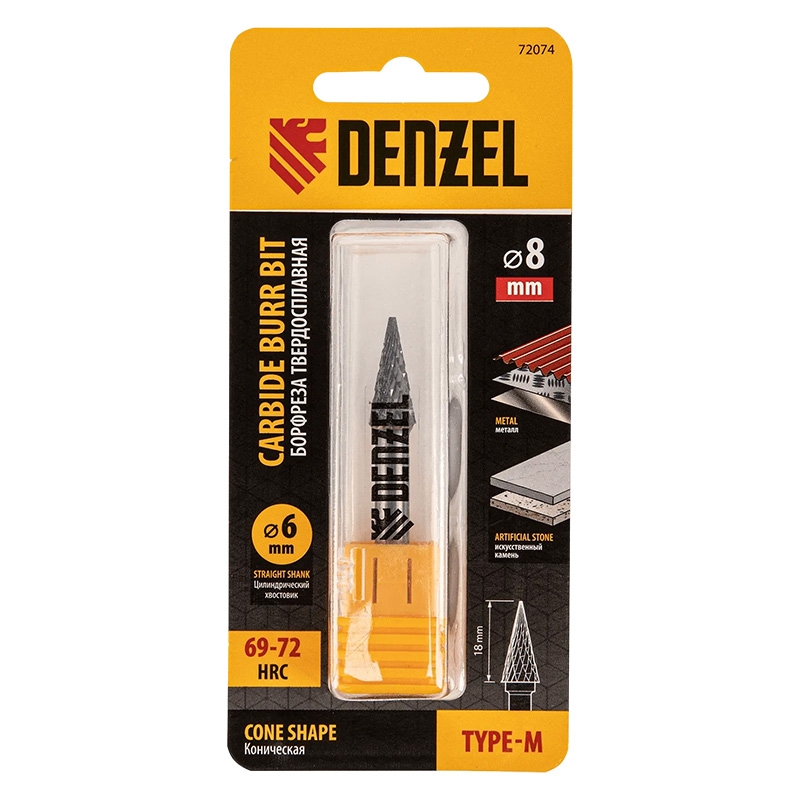 Борфреза твердосплавная по металлу коническая, тип М, 8 мм. Denzel