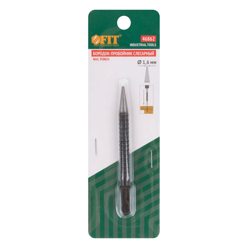 Бородок слесарный для пробивки отверстий 1,6 мм выполнен из прочной инструментальной стали, что гарантирует его долговечность и надёжность в работе. Рифлёная поверхность наконечника предотвращает скольжение в руке, обеспечивая удобный и безопасный хват. Инструмент предназначен для пробивания отверстий и нанесения отметин на тонком листовом металле.