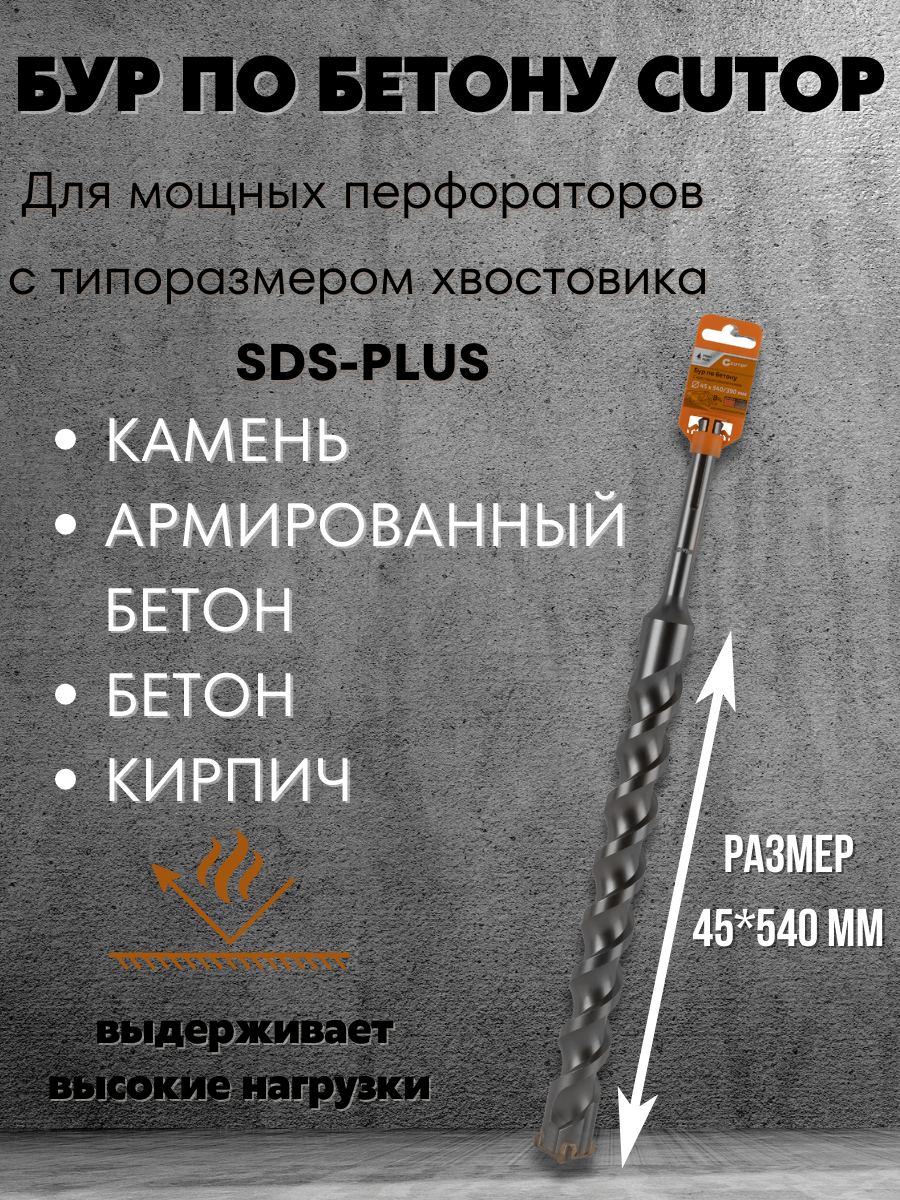 Бур по бетону CUTOP, Profi Plus, с крестовым наконечником, SDS-Max, 45х540 мм 42-45540 1 шт.
