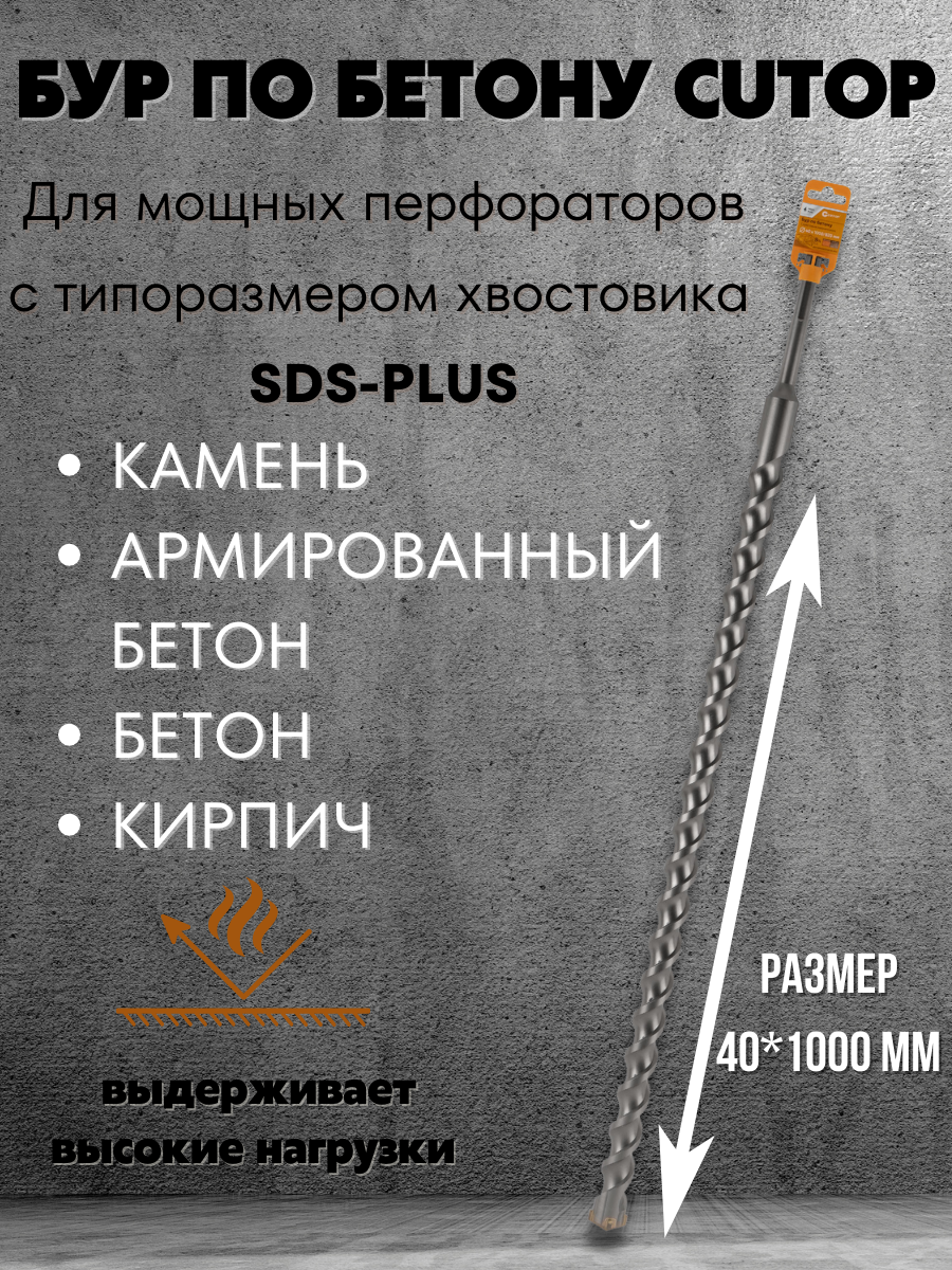 Бур по бетону CUTOP, Profi Plus, с крестовым наконечником, SDS-Max, 40х1000 мм 42-401000 1 шт.