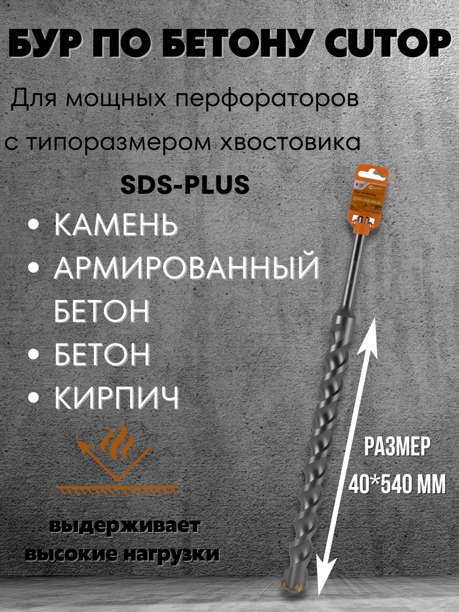 Бур по бетону CUTOP, Profi Plus, с крестовым наконечником, SDS-Max, 40х540 мм 42-40540 1 шт.