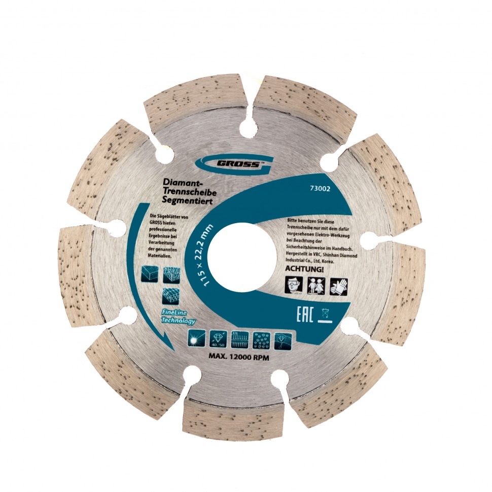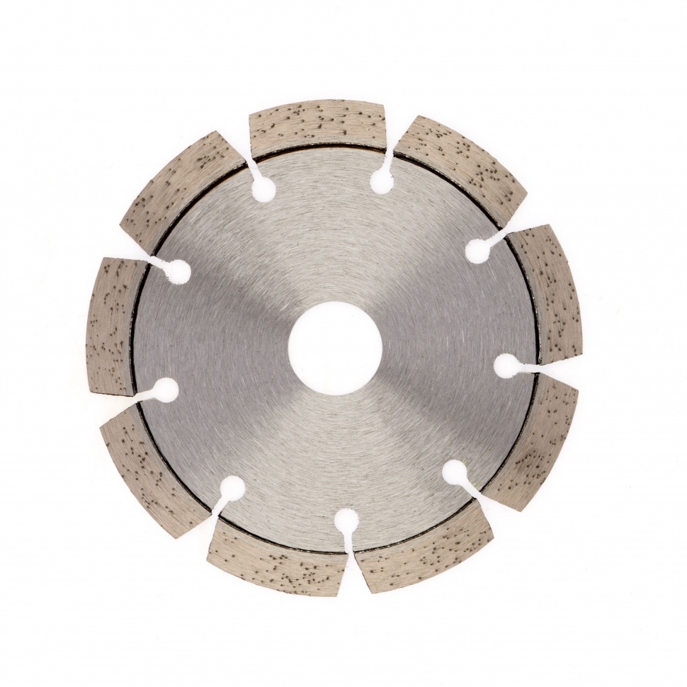 Алмазный диск Gross ф115х22,2 мм 73002 с лазерной приваркой сегментов предназначен для сухого резания бетона, в том числе свежего, кирпича, песчаника и гранита. Посадочный диаметр 22,2 мм позволяет использовать диск в качестве расходного инструмента для УШМ. Сегменты обеспечивают быстрое сухое резание без необходимости водяного охлаждения. За счет оптимально подобранной связки диск выдерживает перегрузки и подходит как для интенсивного бытового, так и для профессионального применения, когда требуется выполнить большой объем работ.Преимущества Сегментная форма &mdash 9 прорезей в режущем слое способствуют небольшому изменению размера секторов диска в процессе сухого резания, что позволяет защитить его от деформации. Лазерная приварка сегментов &mdash режущий алмазный слой прочно фиксируются на корпусе, такая технология изготовления гарантирует надежность диска и высокую стойкость к нагрузкам. Ширина алмазного слоя 10 мм &mdash диск гарантирует высокую производительность выполняемых работ. Высокая концентрация