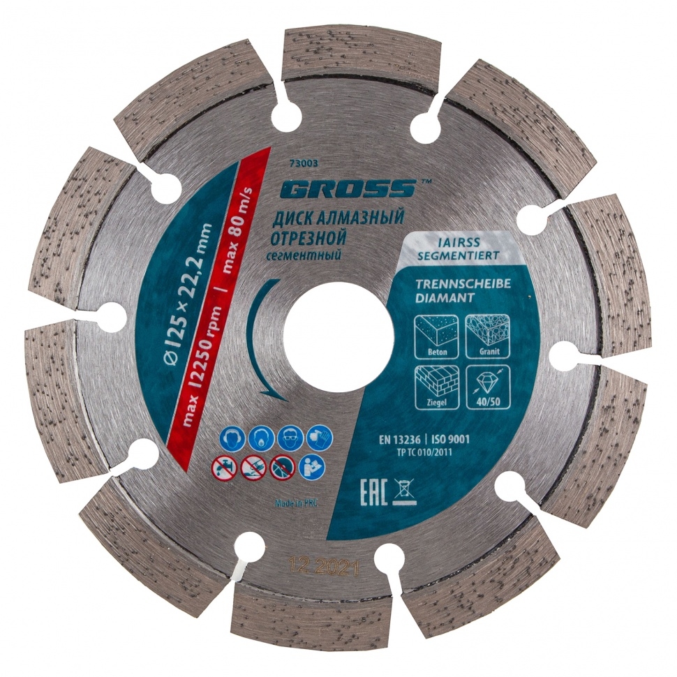 Диск алмазный лазерная приварка сегментов сухое резание 125х22,2 мм Gross