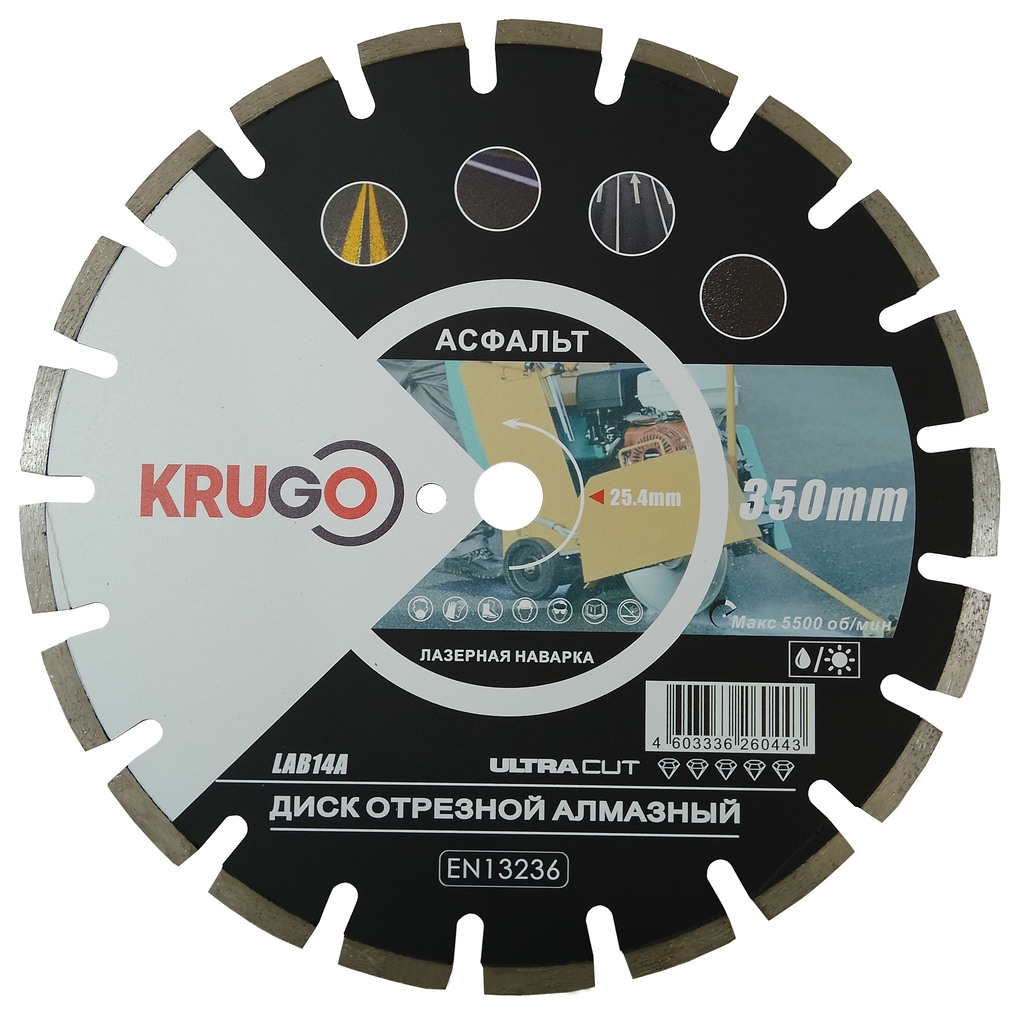 Диск алмазный лазерная сварка для асфальта 350х25,4х40х3,2х10/15 мм KRUGO