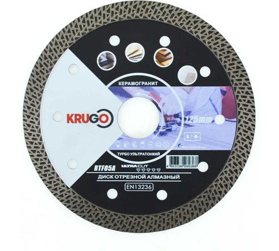 Диск алмазный по керамограниту супертонкий турбо 125х1,4х22,23х10 мм TF KRUGO