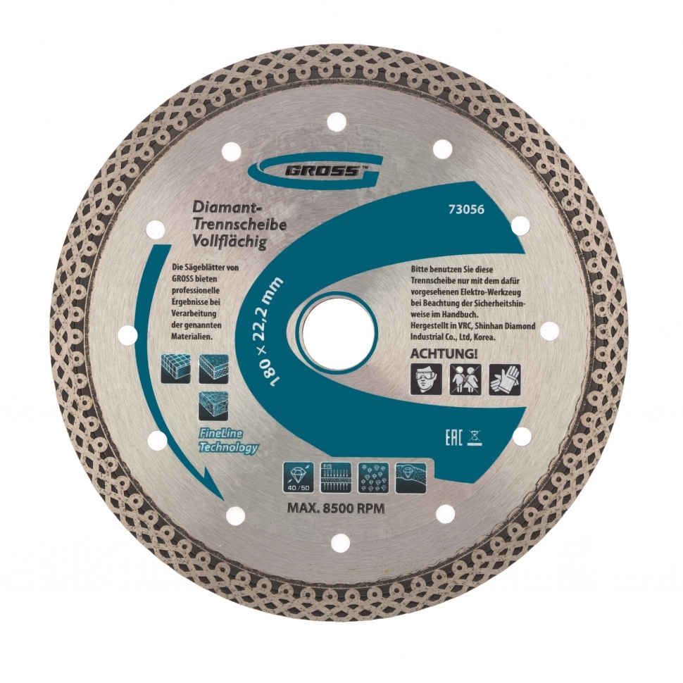 | Диск алмазный тонкий сплошной мокрое резание 180х22,2 мм Jaguar, Gross | 73056 | 1 шт. |