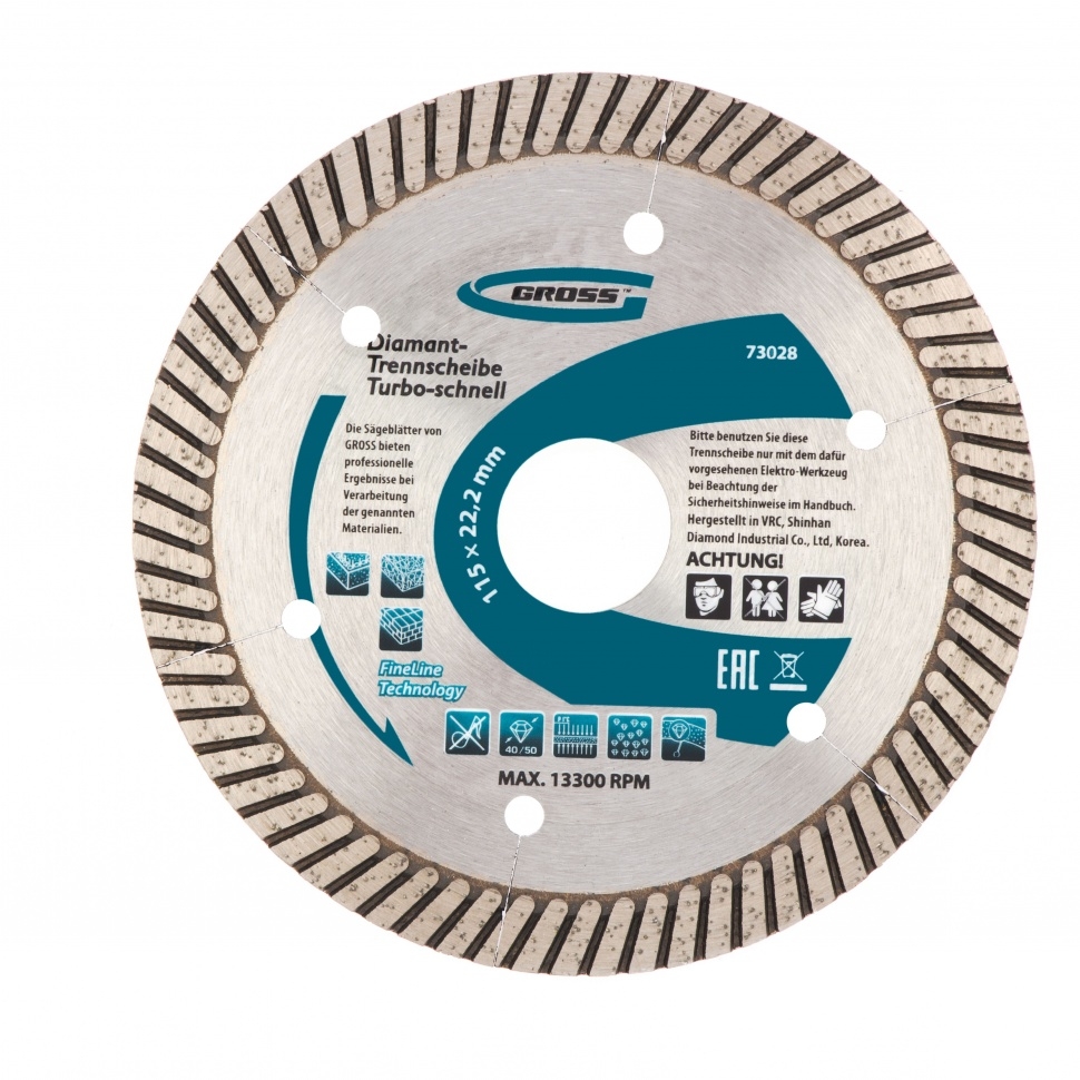 Диск алмазный турбо с лазерн.перфорац. сухое резание 115х22,2 мм Gross