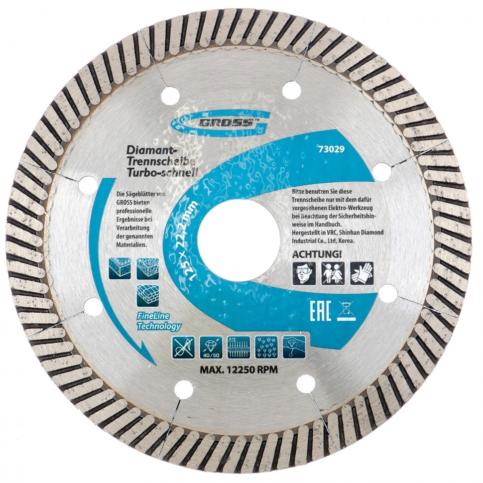 Диск алмазный турбо с лазерн.перфорац. сухое резание 230х22,2 мм Gross