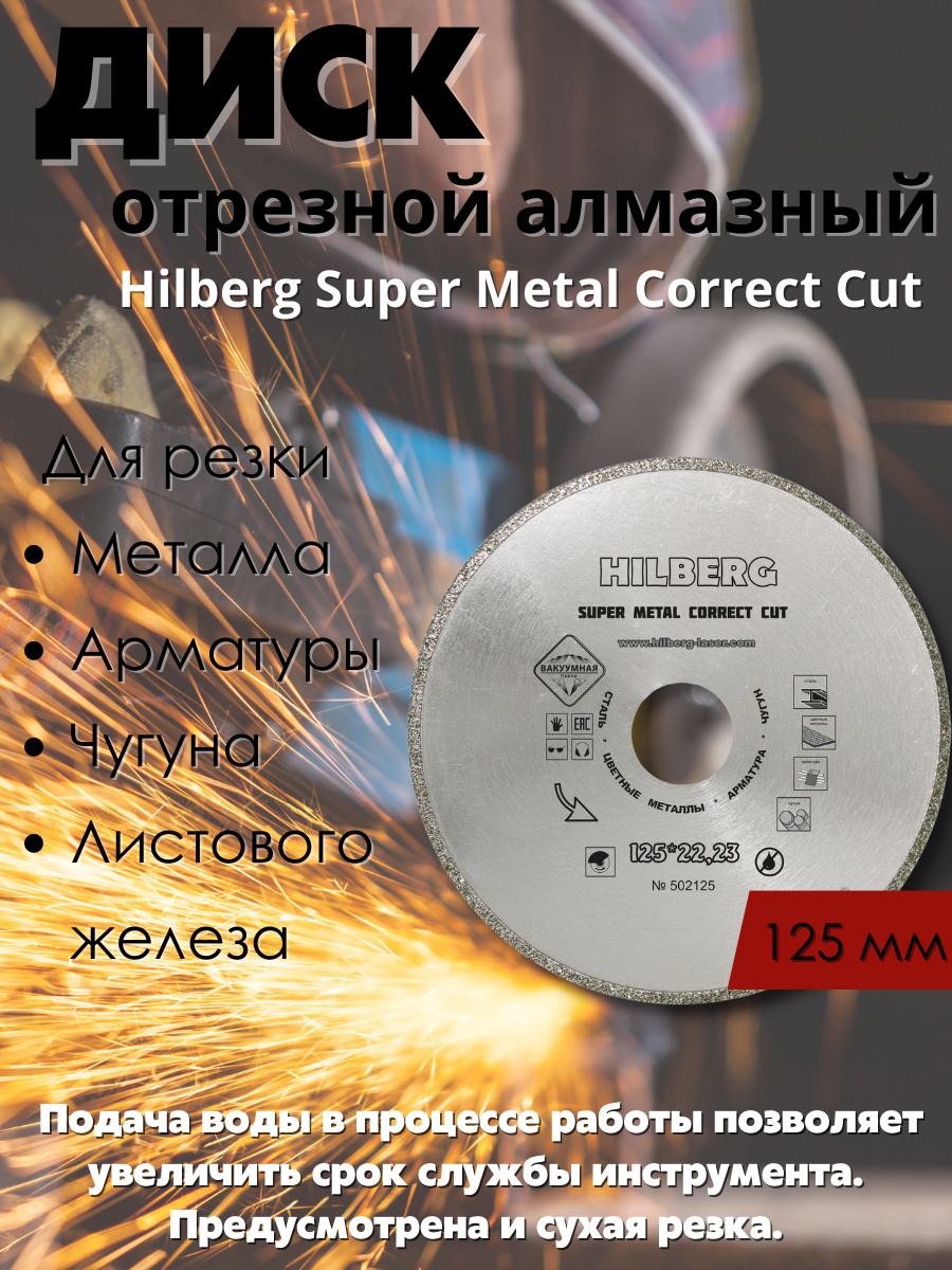 Диск отрезной алмазный Hilberg Super Metall Correct Cut 125х22,23 мм.