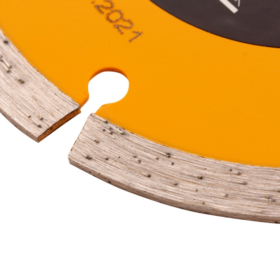 Отрезной алмазный диск Denzel Сегментный ф125 х 22,2 мм 73101 используется для сухого резания по свежему и старому бетону, камню, кирпичу, шлакоблоку, мрамору, тротуарной плитке. Он применяется в качестве сменного инструмента с профессиональными и бытовыми УШМ. Диск сегментного типа отличается высокой производительностью даже при интенсивных нагрузках, не требует водяного охлаждения.Преимущества Эффективность реза плотных материалов обеспечивает сбалансированная металлическая связка, устойчивая к перегреву и перегрузкам. Рабочая часть с высококонцентрированным алмазным слоем шириной 7 мм повышает скорость реза и износостойкость диска. Диск разделен на сегменты, что способствует хорошему отводу пыли во время работы. Изготовление по технологии холодного прессования позволяет добиться хороших режущих свойств диска.