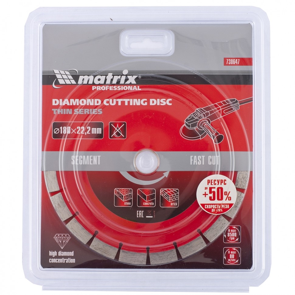 Диск отрезной алмазный сегментный тонкий сухое резание 180х22,2 мм Matrix