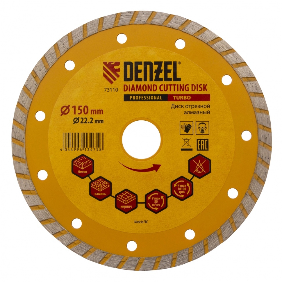 | Диск отрезной алмазный сегментный турбо сухое резание 150х22,2 мм Denzel | 73110 | 1 шт. |
