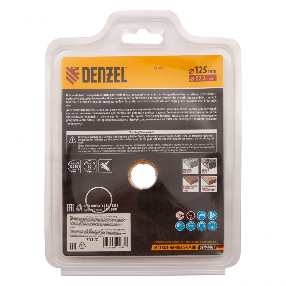 Диск отрезной алмазный сплошной мокрое резание 125х22,2 мм Denzel