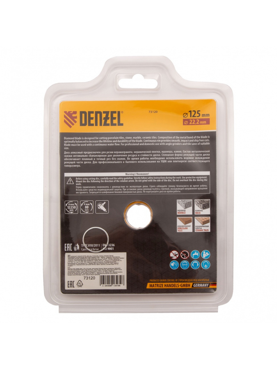 | Диск отрезной алмазный сплошной мокрое резание 150х22,2 мм Denzel | 73126 | 1 шт. |