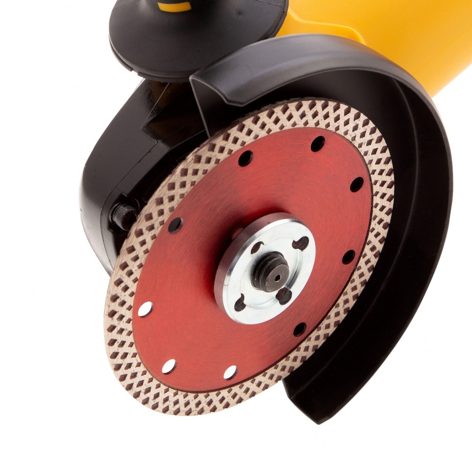 Отрезной алмазный диск Matrix 73124, сплошной, 125 мм &mdash оснастка для болгарок и плиткорезов с диаметром вала 22,2 мм. Он применяется для резки мрамора, искусственного и натурального камня, керамогранитной и керамической плитки. Использование без подачи воды расширяет возможности инструмента. Диск предназначен для бытового применения. Рекомендуется использовать водяное охлаждение для увеличения ресурса диска.Преимущества Благодаря высокой концентрации алмазов срез получается чистым и ровным. Режущая кромка шириной 10 мм способствует повышению производительности. Отверстия в корпусе диска способствуют активному охлаждению, что позволяет использовать диск для сухой резки. Диск выполнен нанесен методом холодного прессования, поэтому устойчив к механическим нагрузкам.