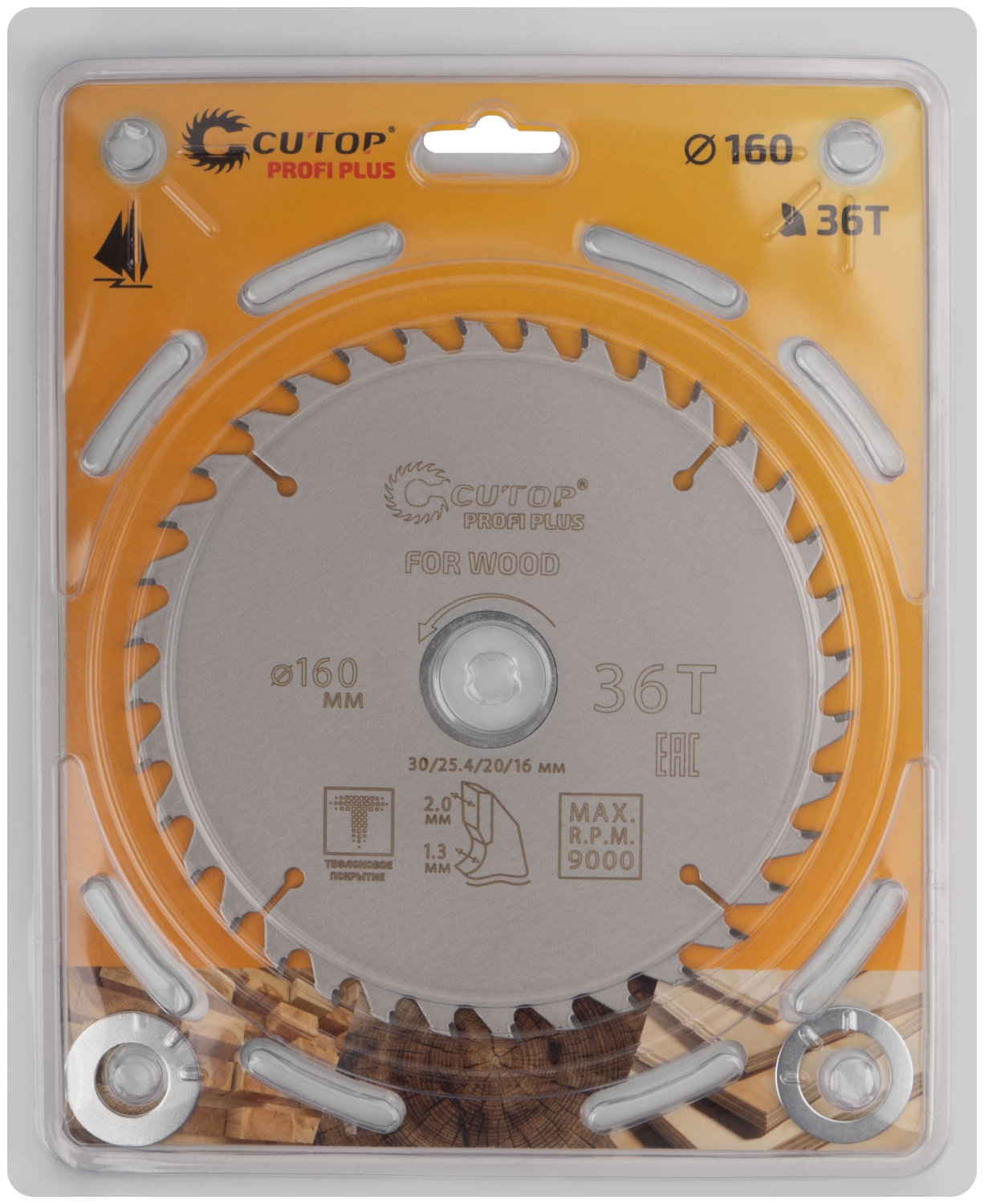Диск пильный по дереву с тефл.покр.36Т CUTOP Profi Plus 160х1,3/2,0х30/25,4/20/16 мм