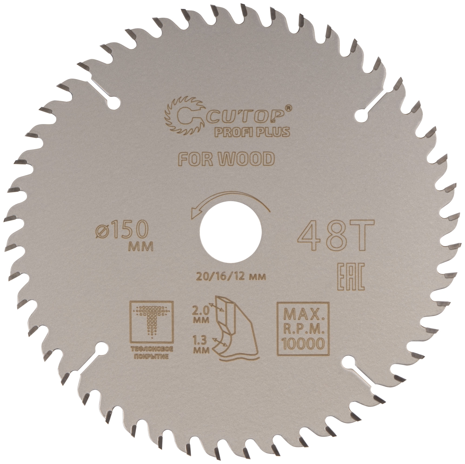 Диск пильный по дереву с тефл.покр.48Т CUTOP Profi Plus 150х1,3/2,0х20/16/12 мм