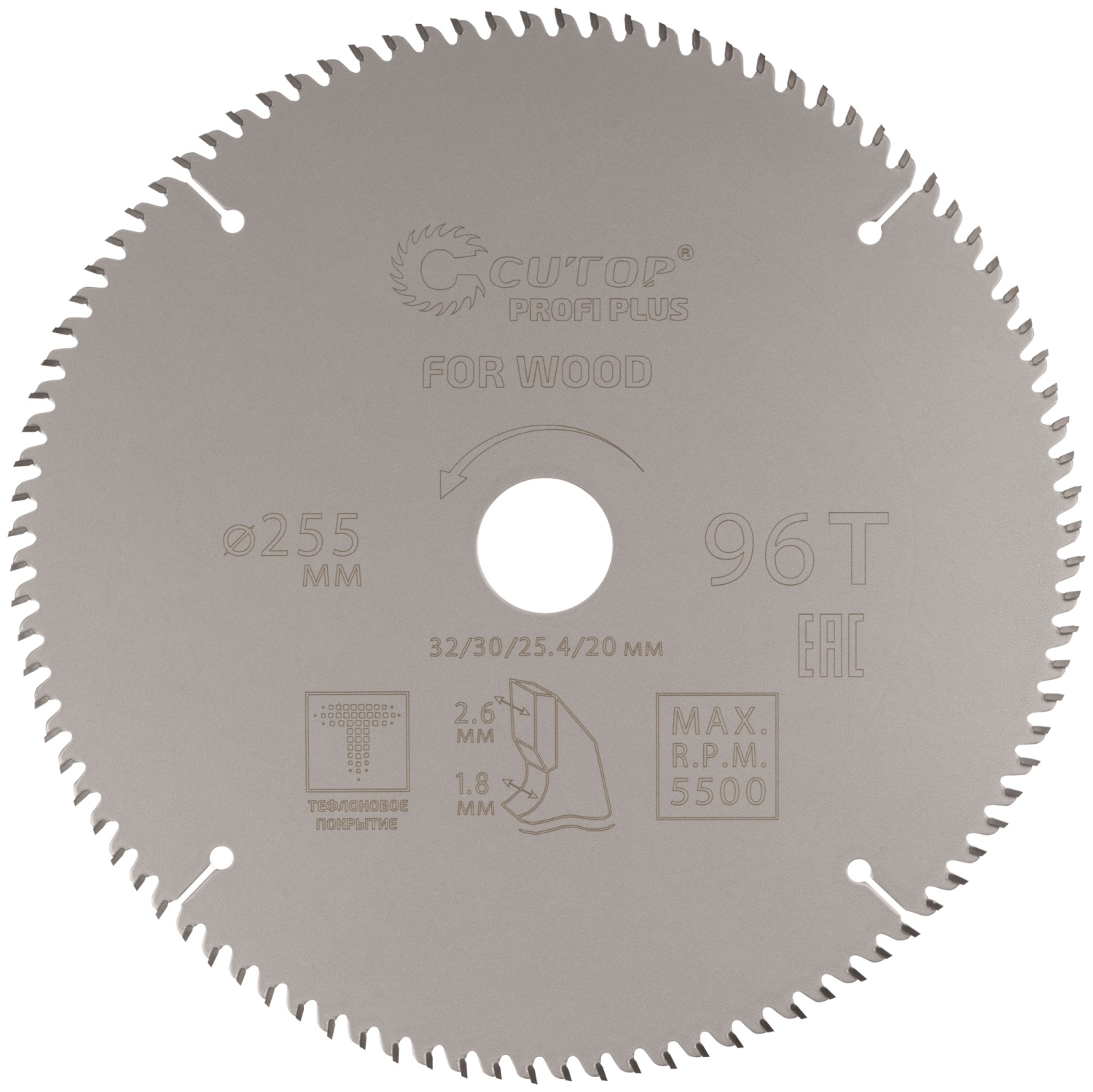 Диск пильный по дереву с тефл.покр.96Т CUTOP Profi Plus 255х1,8/2,6х32/30/25,4/20 мм