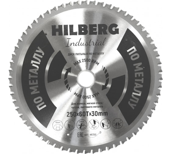 Диск пильный Hilberg Industrial Металл (250х30 мм; 60Т) HF250