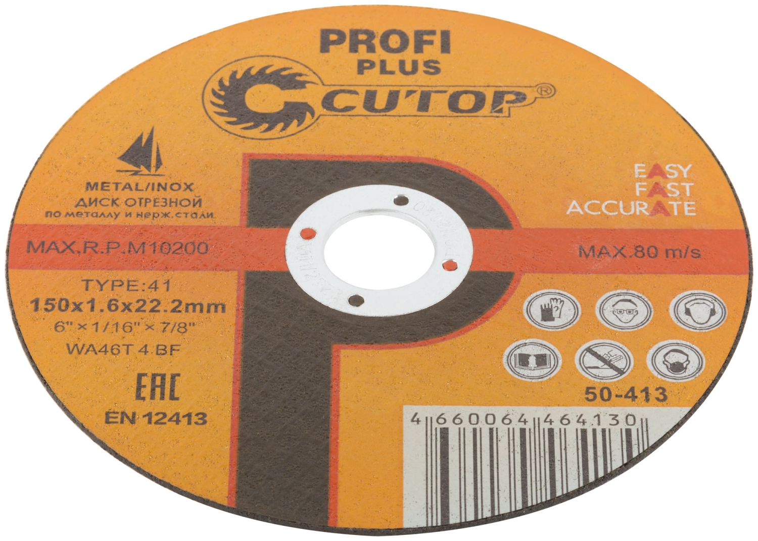 CUTOP Profi PLUS. Использованы уникальные технологии производства. Профессиональный отрезной диск для промышленного использования на основе монокристаллического электрокорунда, который улучшает КПД диска и позволяет увеличить количество резов в несколько раз. Предназначен для резки металла и н ержавеющей стали. Для углошлифовальных машин. Посадочный диаметр 22,2 мм.