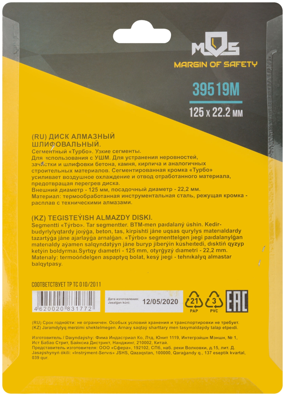 Сегментный. "Турбо". Для использования с УШМ . Посадочный диаметр 22,2мм. Для устранения неровностей, зачистки и шлифования кирпича, бетона, Сегментная кромка "Турбо " усиливает воздушное охлаждение и отвод обработанного материала, предотвращая перегрев диска. мрамора,гранита и других твердых материалов. Материал: инструментальная сталь, режущая кромка-расплав с техническими алмазами. Уп : картонная коробка.