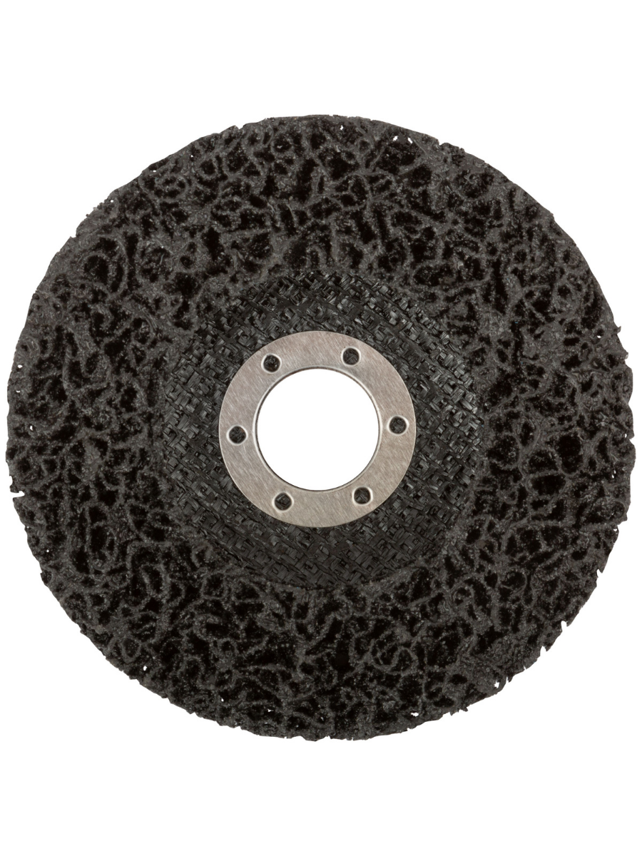 Грубой зернистости, отличается высокой износоустойчивостью. Для очистки металлических поверхностей. Для углошлифовальных машин. Посадочный диаметр 22,2 мм. Благодаря специальной структуре не загрязняется и меньше нагревается в процессе работы по сравнению с традиционными абразивными материалами. Материал: инструментальная сталь, нейлоновые волокна с образивным слоем из карбида кремния.