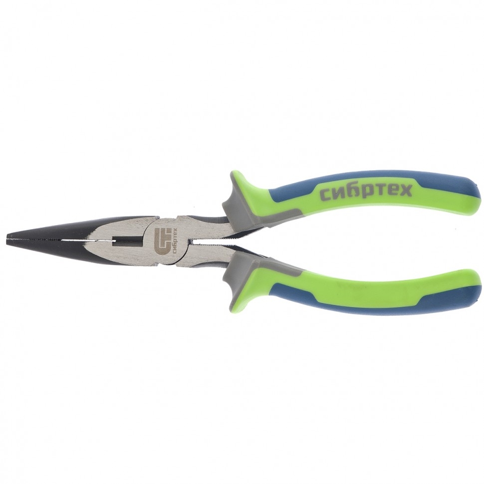 Длинногубцы прямые, фосфатирование, трехкомпонентные рукоятки 180 мм Сибртех