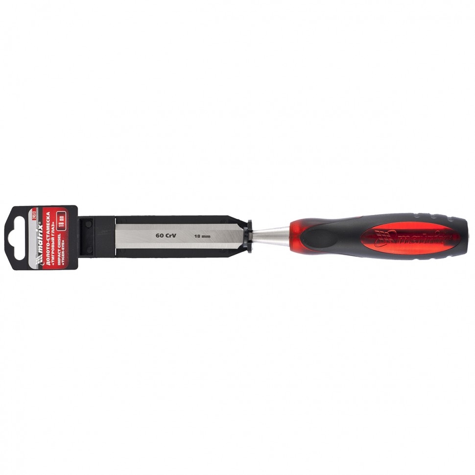 Долото-стамеска Matrix «Тигровый глаз» 24513, 18 мм, с двухкомпонентной обрезиненной рукояткой, используется в столярном и плотницком деле, в производстве мебели. С его помощью можно вырезать углубления, формировать пазы, зачищать шипы и гнезда, снимать фаски. Долото-стамеска выдерживает удары киянкой или молотком, т.к. металлический затыльник защищает его от деформации. Полотно выполнено из легированной стали хромованадиевой группы, поэтому отличается повышенной прочностью, стойкостью к износу и позволяет добиться необходимой твердости инструмента. Долото-стамеска обладает твердостью 65 HRC (0,7 длины рабочей части полотна), поэтому длительное время сохраняет режущие свойства. Острое как бритва лезвие обработано на заводе под углом 20-35°, повторная заточка потребуется минимум через 6 месяцев. Конструкцией предусмотрен металлический стержень, проходящий сквозь рукоятку, что повышает прочность и долговечность инструмента. Двухкомпонентная рукоятка с резиновыми вставками и упорами под пальцы.