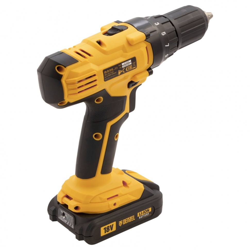Аккумуляторная дрель-шуруповерт DENZEL CDL-IB-18-02 26113 предназначена для домашних мастеров.