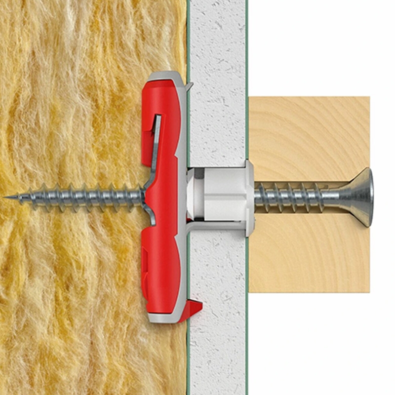 Он состоит из двух компонентов и усилен стекловолокном, что позволяет ему выдерживать значительные нагрузки. При попадании в полнотелые основания этот крепёжный элемент может работать как распорный дюбель. Для монтажа можно использовать разные виды шурупов, крюков и шпилек.