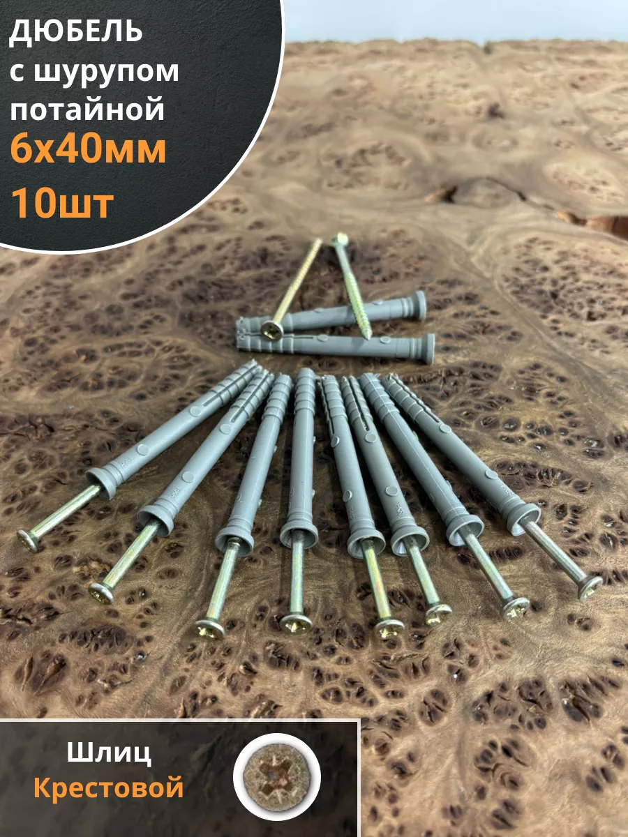 Дюбель с шурупом потайной 6х40 , 10 шт.