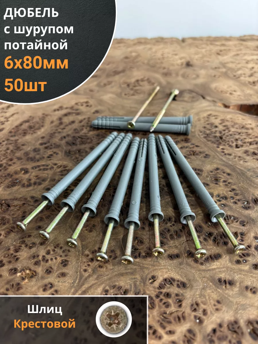 Дюбель с шурупом потайной 6х80 , 50 шт.