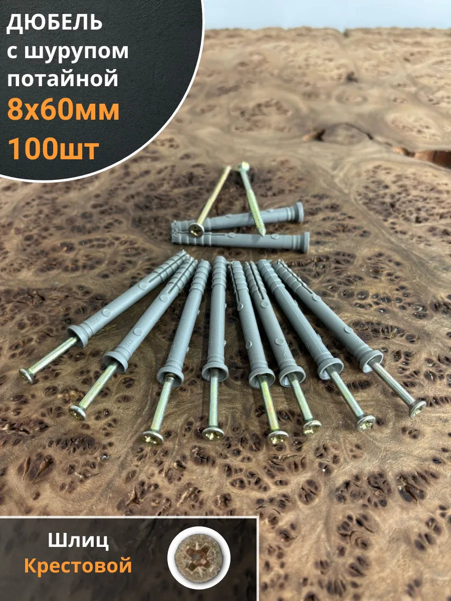 Дюбель с шурупом потайной 8х60 , 100 шт.