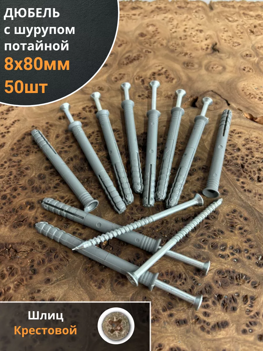 Дюбель с шурупом потайной 8х80 , 50 шт.