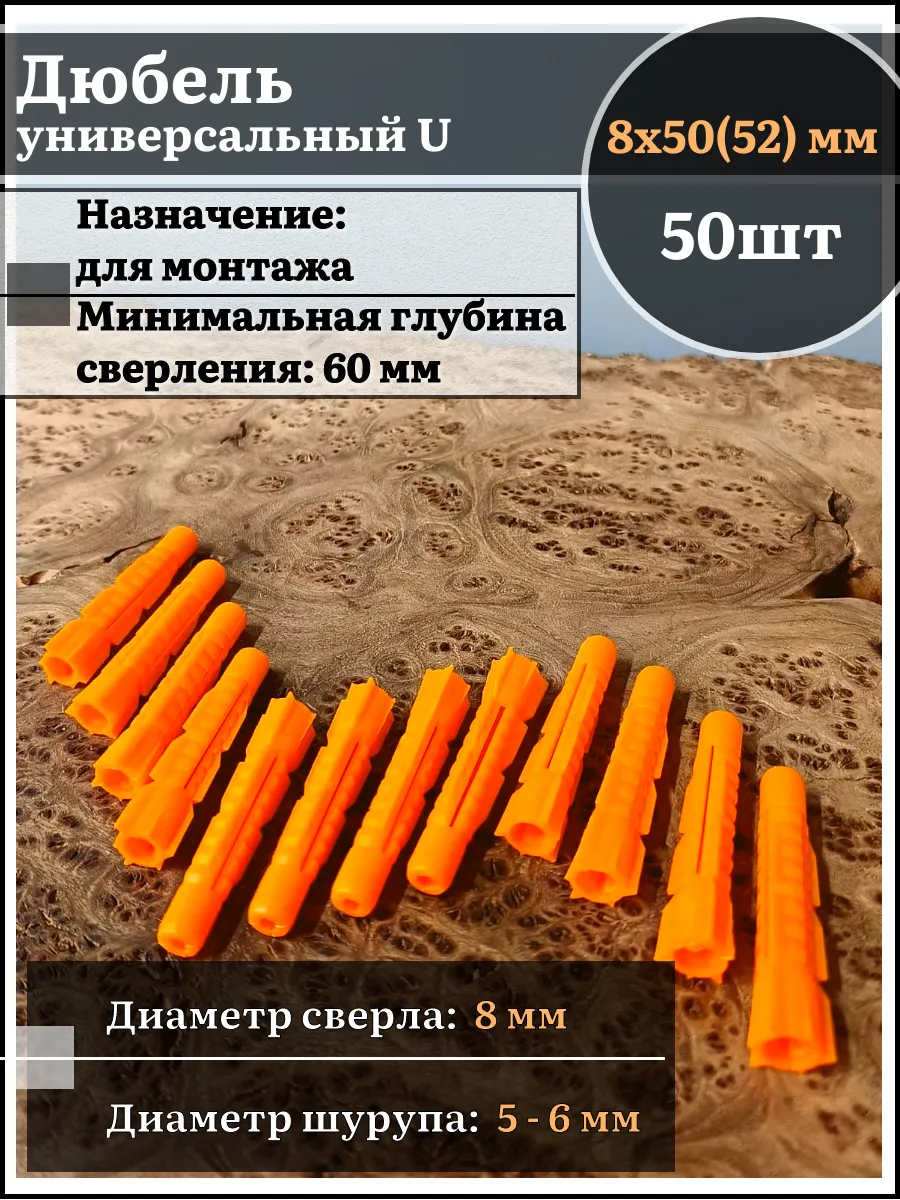Дюбель универсальный U 8х50(52), 50 шт