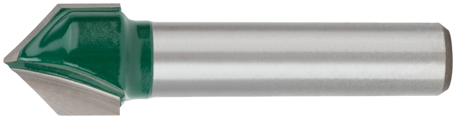 Используется для работ по дереву. Для фрезерования пазов. Угол при вершине 90°. Цилиндрический хвостовик. Материал: инструментальная сталь, с твердосплавными режущими вставками. Упаковка: пластиковая коробка.