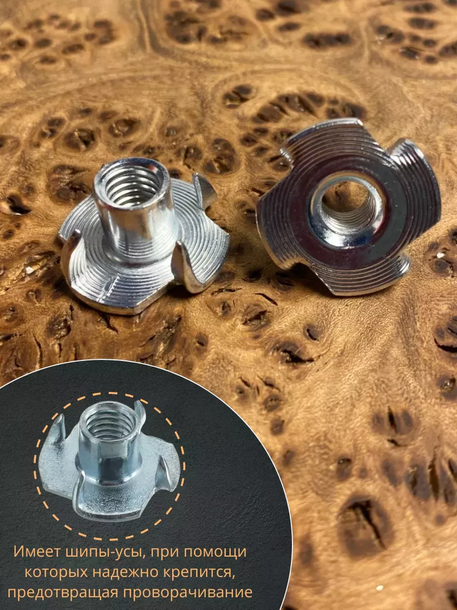 Гайка мебельная крыльчатая врезная М4х8 DIN1624 10 шт