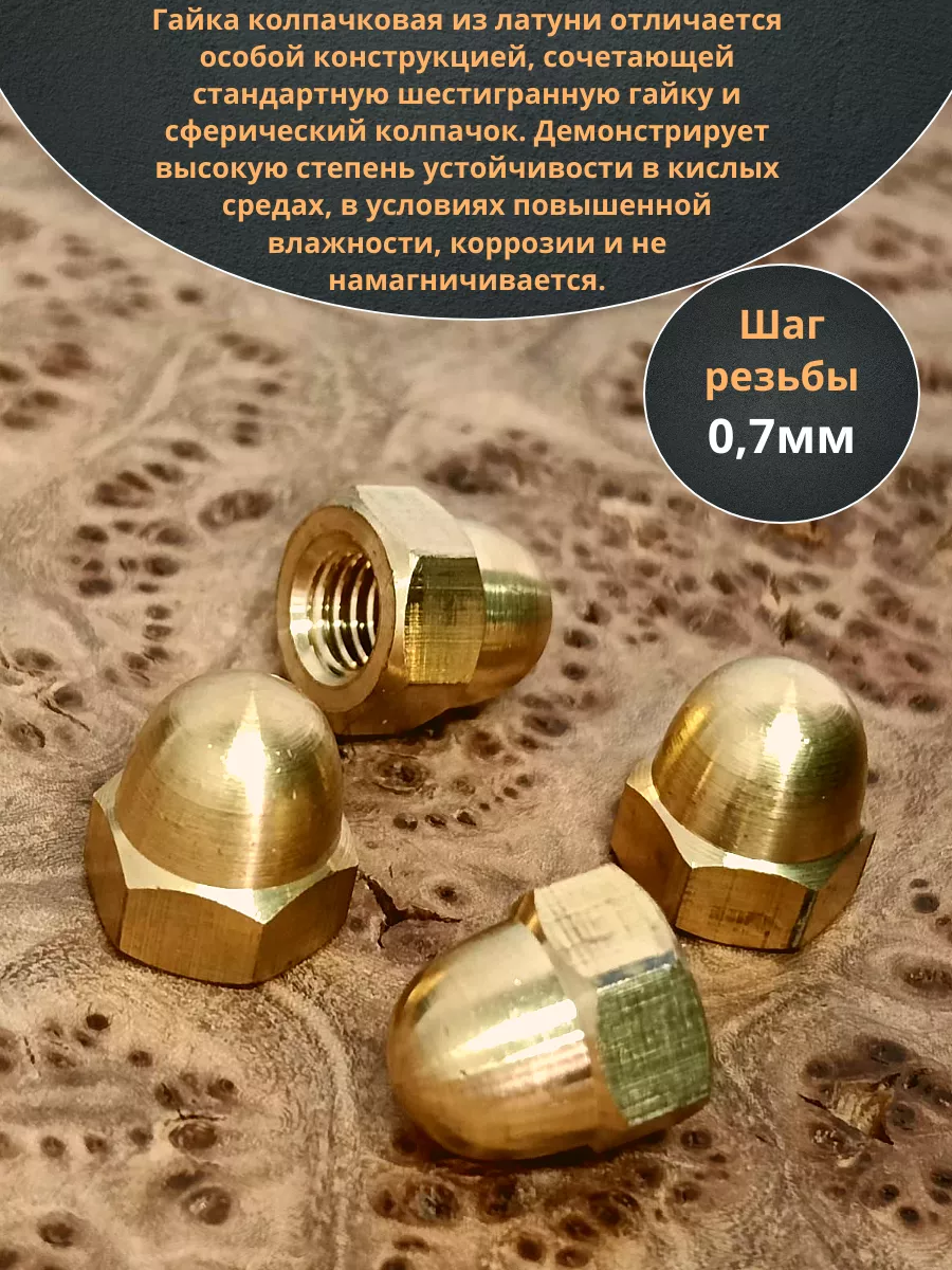 Гайка М4 латунная колпачковая DIN1587, 10 шт.