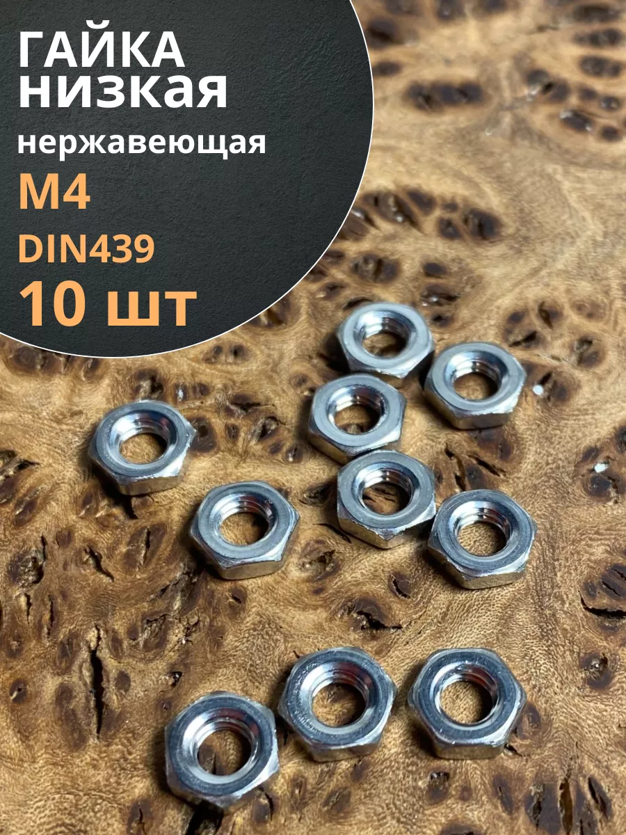 Гайка М4 шестигранная низкая нержавеющая DIN 439 , 10 шт.
