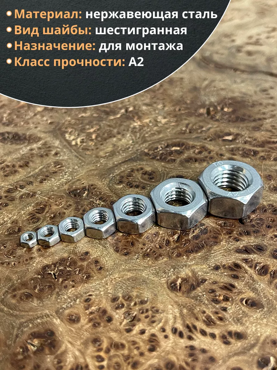 Гайка нержавеющая М3,4,5,6,8,10,12 DIN934 (по 10 шт)