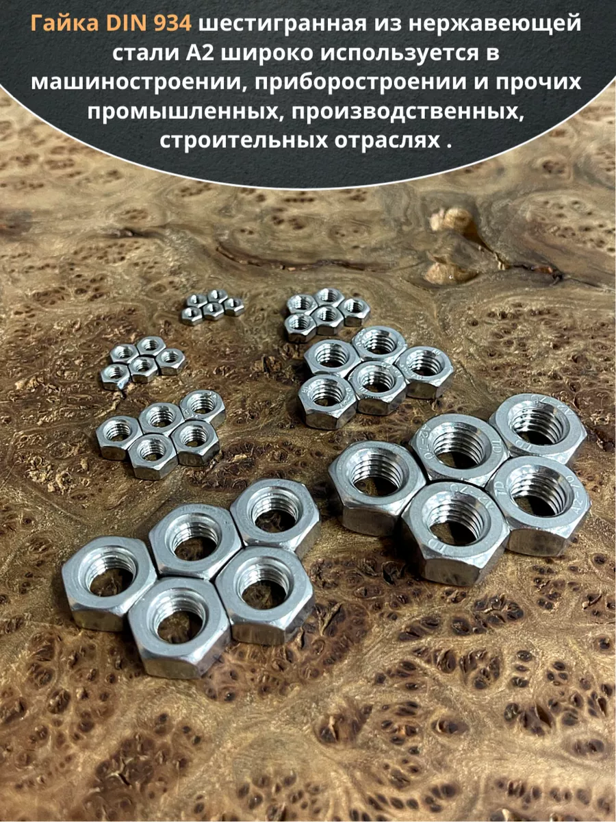 Гайка нержавеющая М3,4,5,6,8,10,12 DIN934 (по 50 шт)