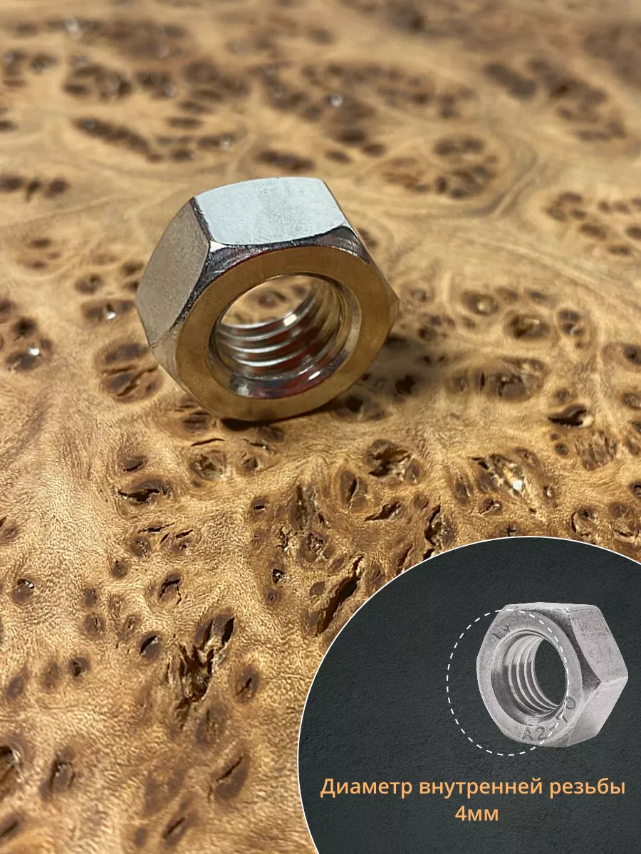 Гайка Нержавеющая М4 DIN 934 шестигранная 50 шт