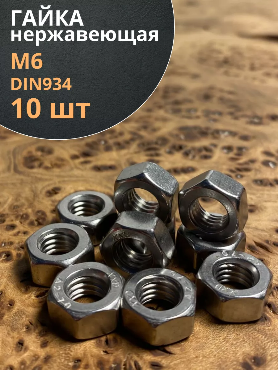Гайка Нержавеющая М6 DIN 934 А2 шестигранная 10 шт
