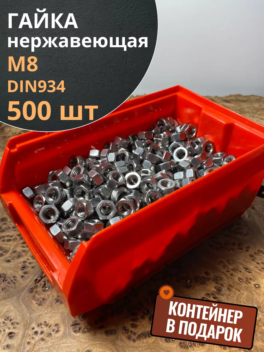 Гайка Нержавеющая М8 DIN 934 А2 500 шт. с контейнером