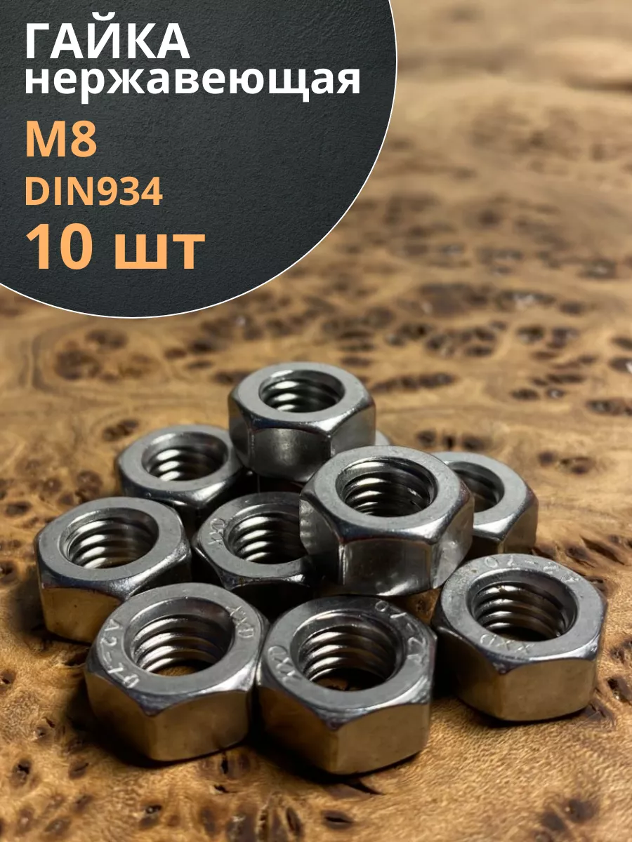 Гайка Нержавеющая М8 DIN 934 А2 шестигранная 10 шт