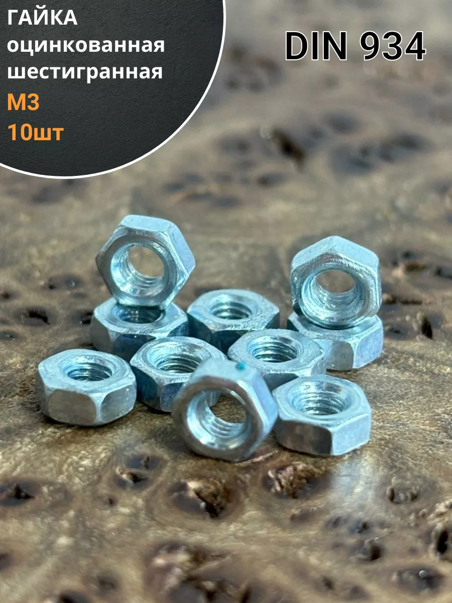 Гайка оцинкованная М3 DIN 934 шестигранная 10 шт.